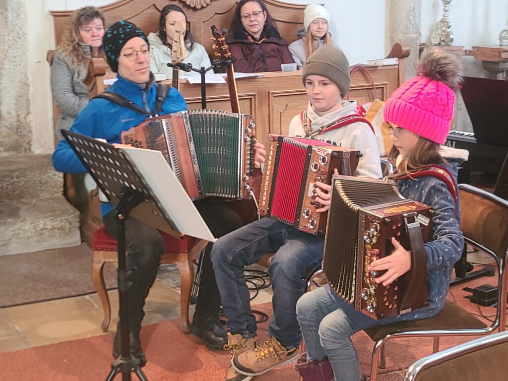Eine besinnliche Stunde in der Pfarrkirche Schönbach, gestaltet von Musikschülern, Kirchenchor, Bläsergruppe und Männergesang.