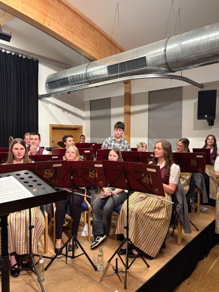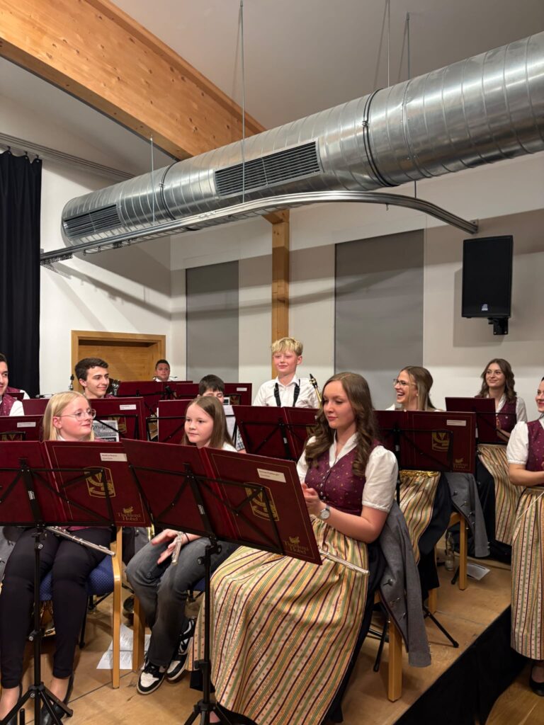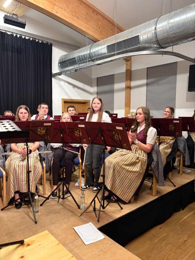 Gäste beim diesjährigen Konzert der Musikkapelle waren 7 Musikschüler, die unter der Leitung von Carina Sandler 2 Stücke zum Besten gegeben haben.
