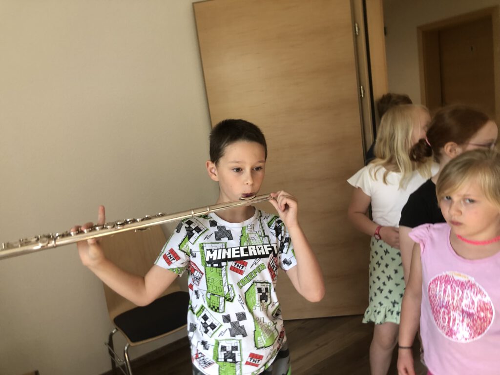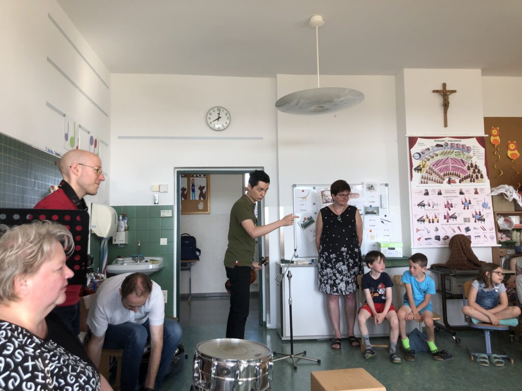 Einige MusikschullehrerInnen besuchten am Schulschluss die Volksschulen der Region und stellten Instrumente vor.