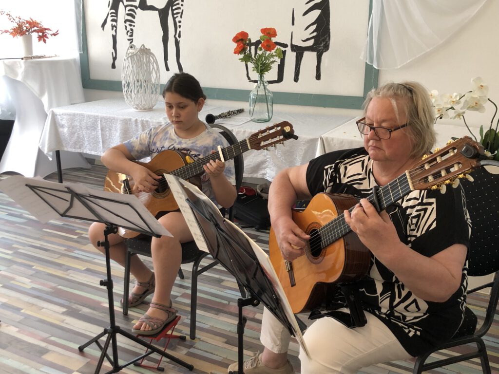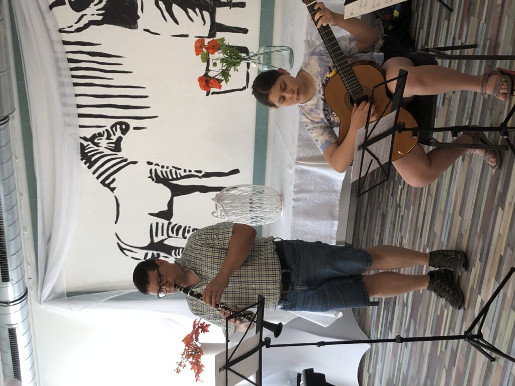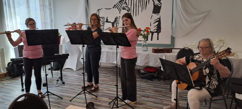Blockflöte, Gitarre, Klarinette, Posaune, Querflöte – ein kleines aber feines Konzert im Cafe Hofer.