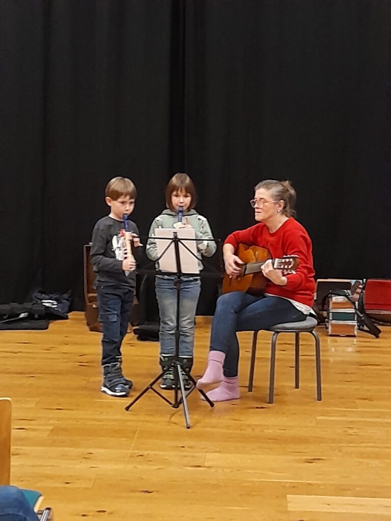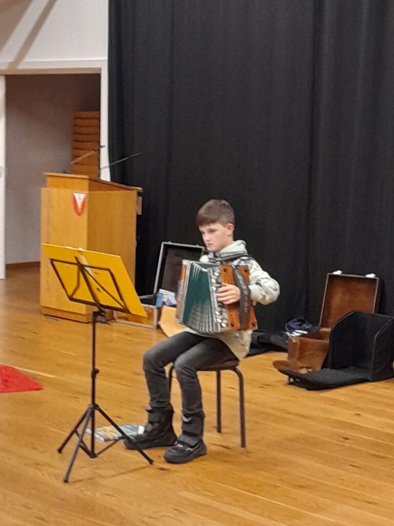 Ein paar Tage vor Weihnachten musizieren die Früherziehungsgruppen, Holzbläser und Schüler auf der Steirischen Harmonika und freuen sich auf das Christkind